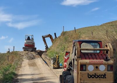 – Création de chemins, routes, trottoirs, pistes cyclables, parkings